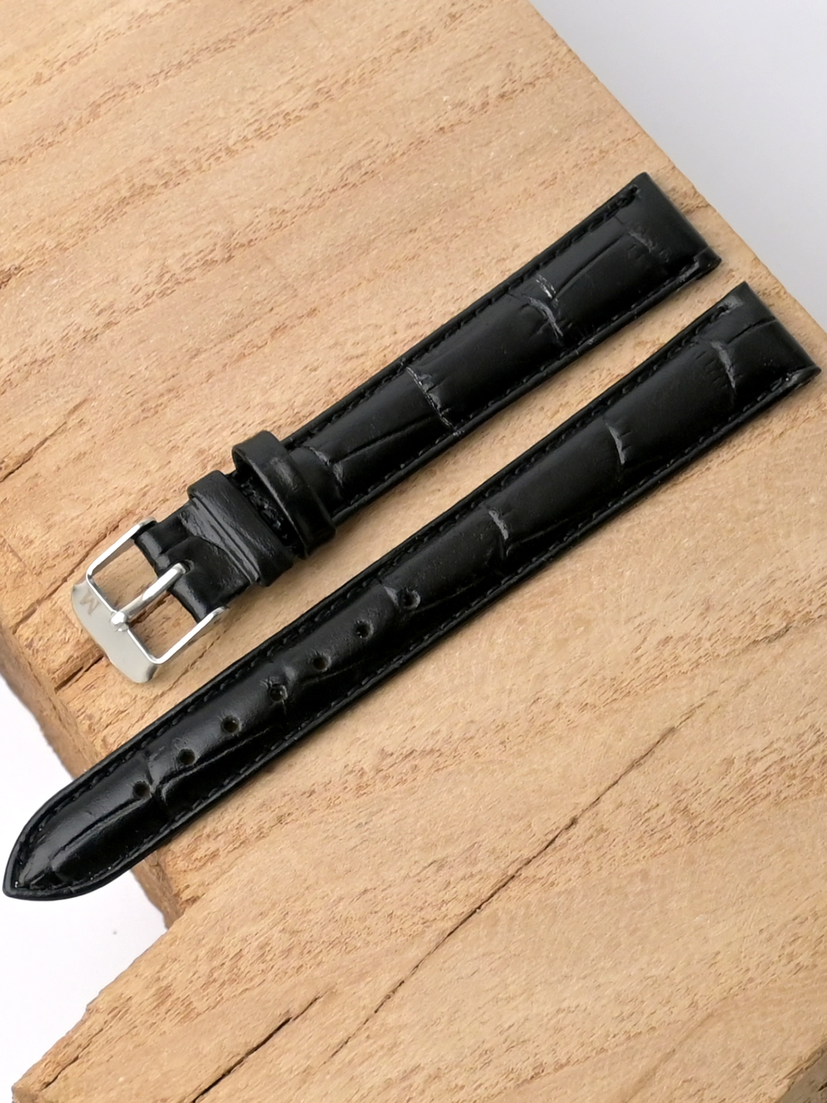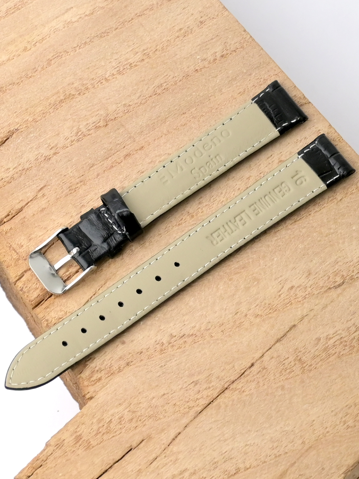 Ремешок Modeno для наручных часов, изготовленный из высококачественной натуральной кожи. Ширина крепления: 16 мм. Ширина пряжки: 14 мм. Длина большей части: 125 мм. Длина меньшей части без застежки: 85 мм. Пряжка из нержавеющей стали.