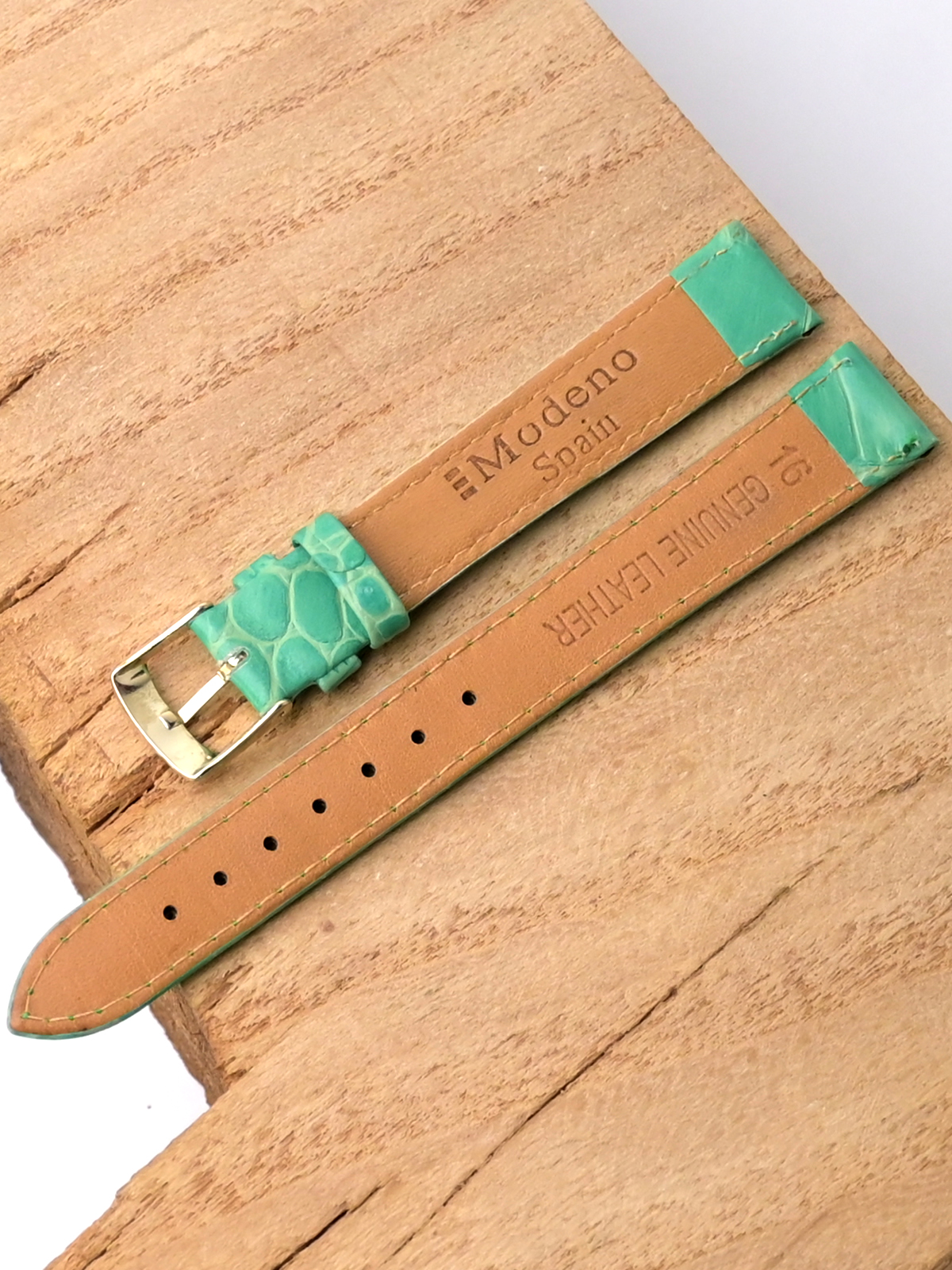 Ремешок Modeno для наручных часов, изготовленный из высококачественной натуральной кожи. Ширина крепления: 16 мм. Ширина пряжки: 14 мм. Длина большей части: 125 мм. Длина меньшей части без застежки: 85 мм. Пряжка из нержавеющей стали с покрытием цвета желтого золота.