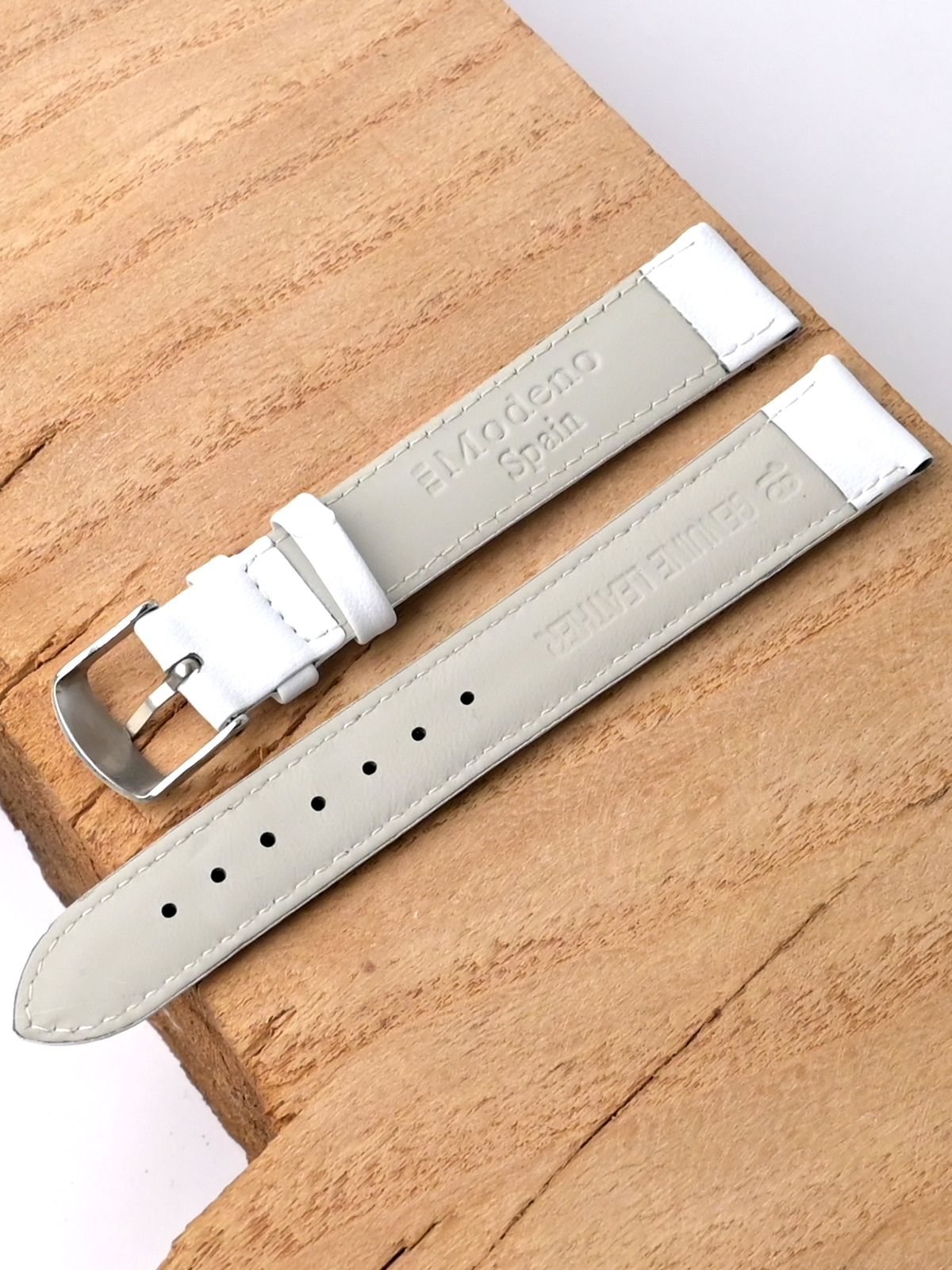 Ремешок Modeno для наручных часов, изготовленный из высококачественной натуральной кожи. Ширина крепления: 18 мм. Ширина пряжки: 16 мм. Длина большей части: 125 мм. Длина меньшей части без застежки: 85 мм. Пряжка из нержавеющей стали.