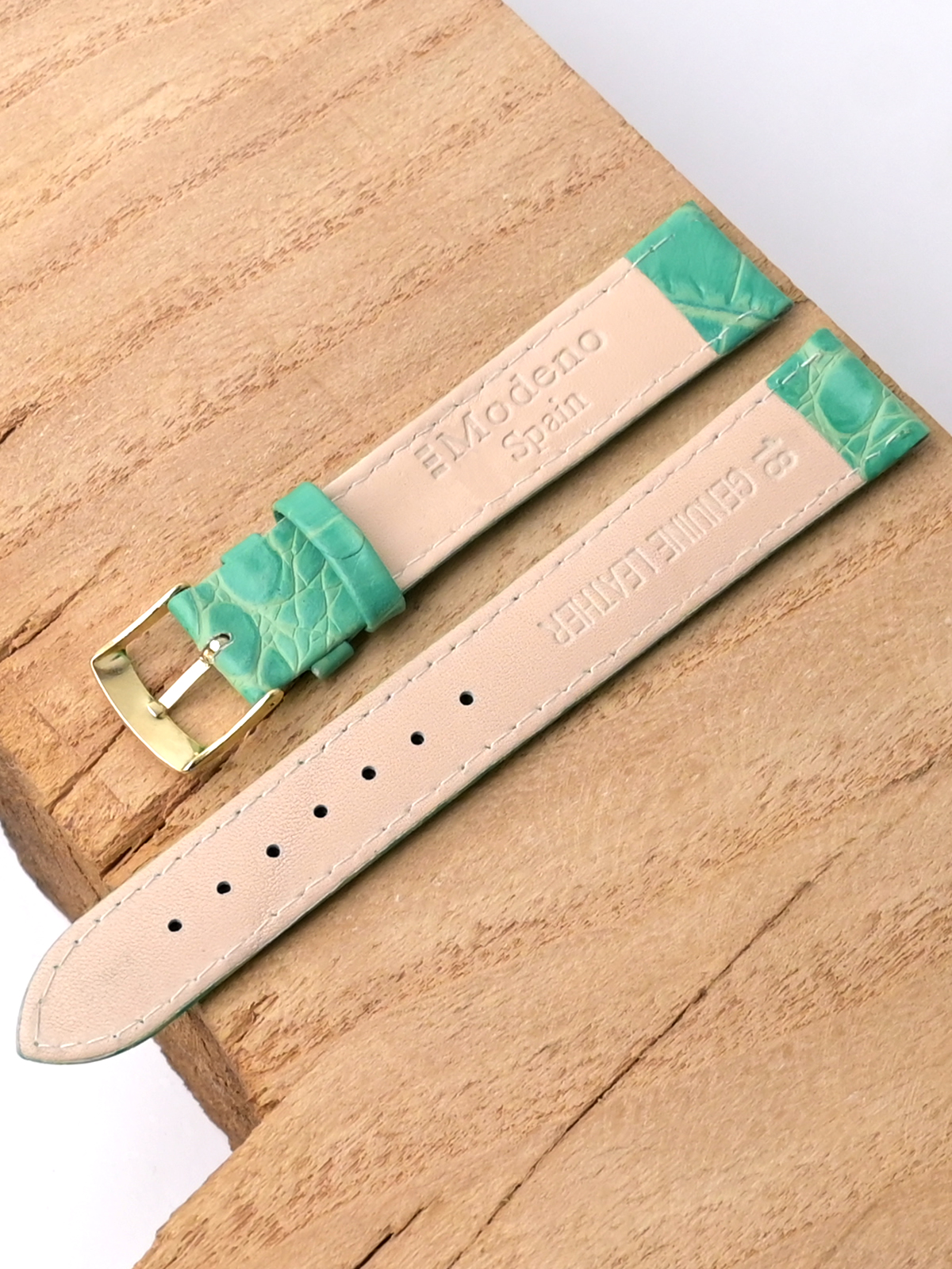Ремешок Modeno для наручных часов, изготовленный из высококачественной натуральной кожи. Ширина крепления: 18 мм. Ширина пряжки: 16 мм. Длина большей части: 125 мм. Длина меньшей части без застежки: 85 мм. Пряжка из нержавеющей стали с покрытием цвета желтого золота.