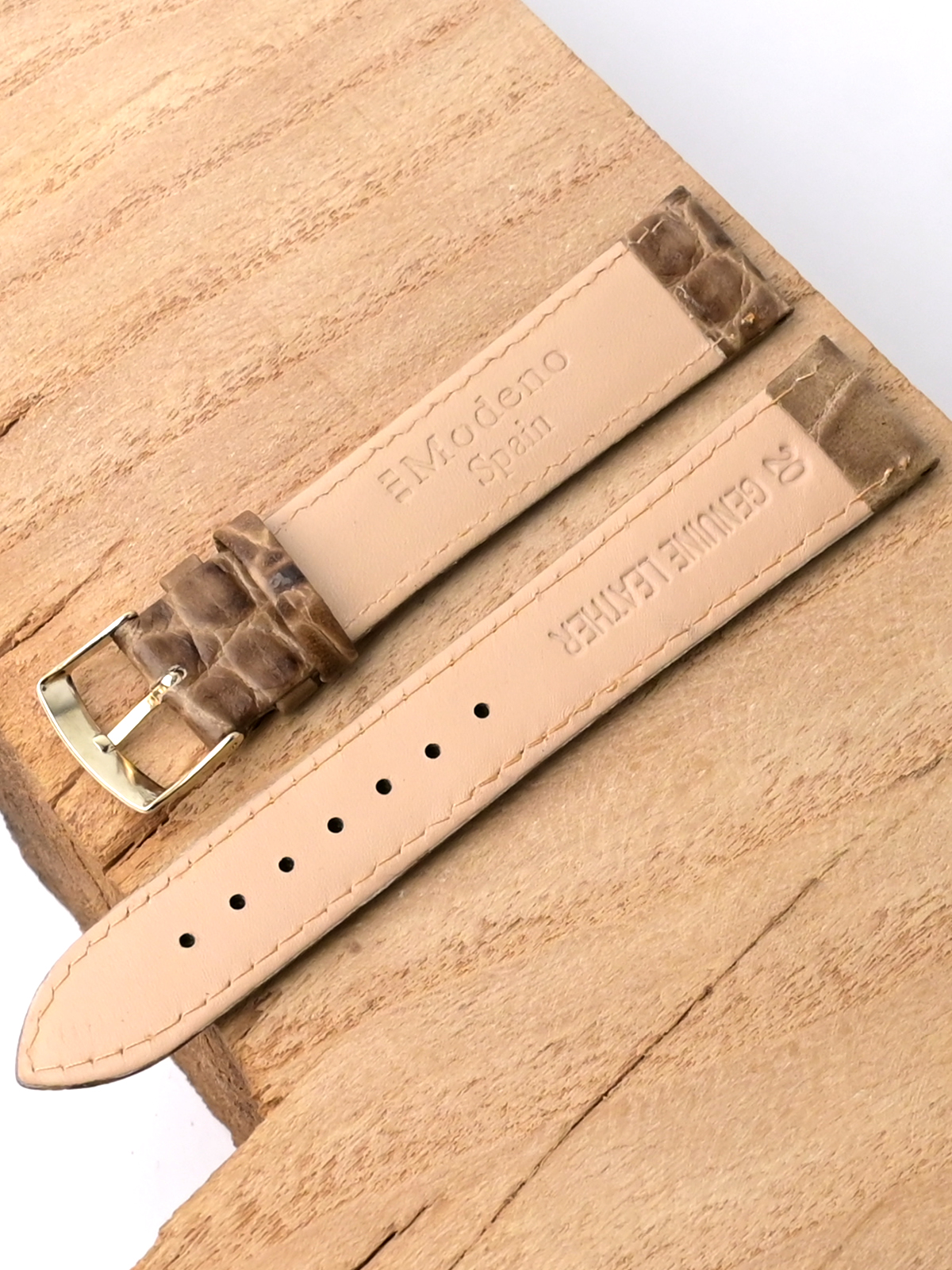 Ремешок Modeno для наручных часов, изготовленный из высококачественной натуральной кожи. Ширина крепления: 20 мм. Ширина пряжки: 18 мм. Длина большей части: 125 мм. Длина меньшей части без застежки: 85 мм. Пряжка из нержавеющей стали с покрытием цвета желтого золота.