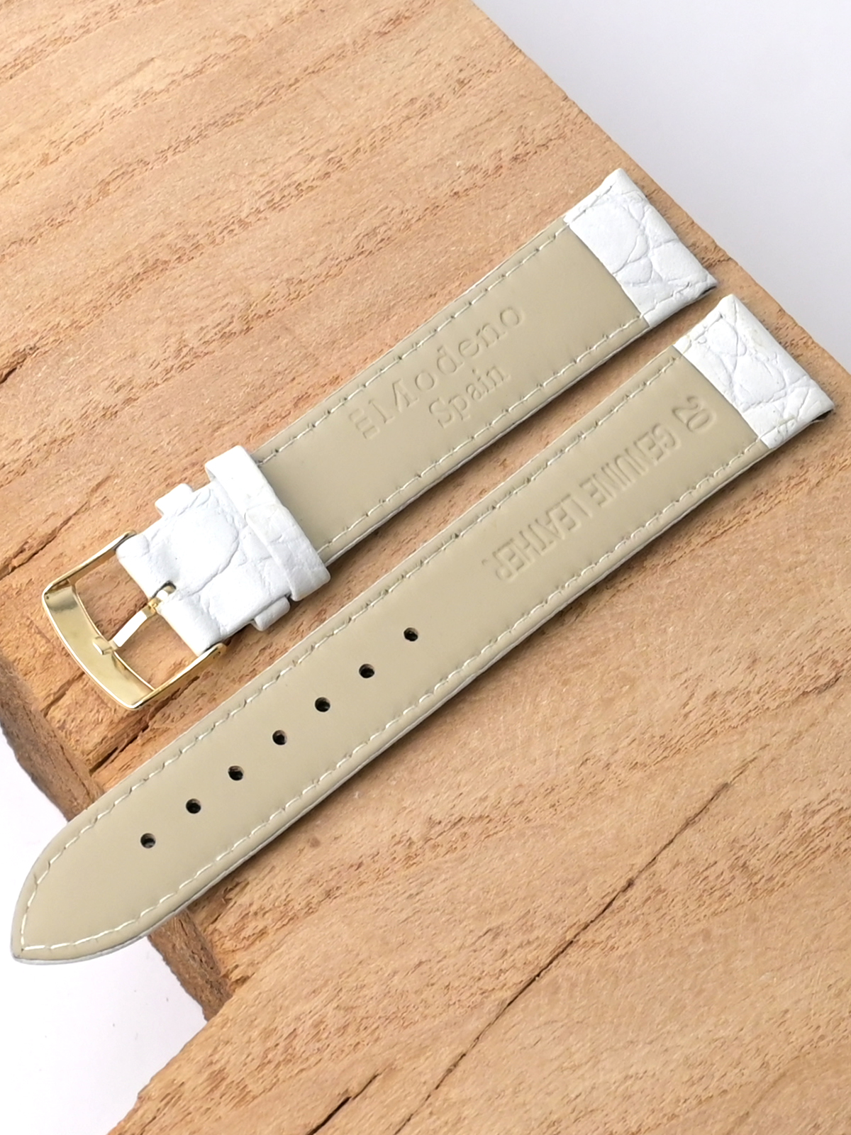 Ремешок Modeno для наручных часов, изготовленный из высококачественной натуральной кожи. Ширина крепления: 20 мм. Ширина пряжки: 18 мм. Длина большей части: 125 мм. Длина меньшей части без застежки: 85 мм. Пряжка из нержавеющей стали с покрытием цвета желтого золота.