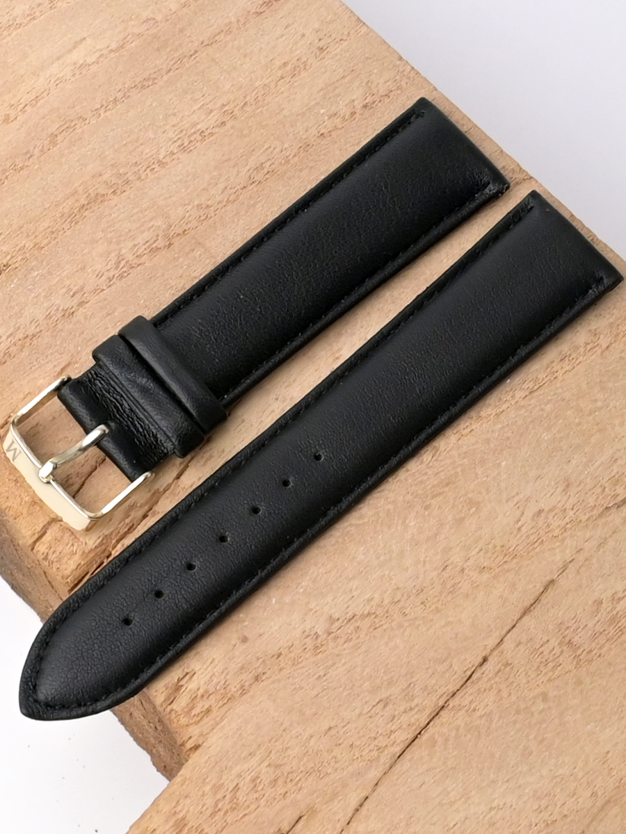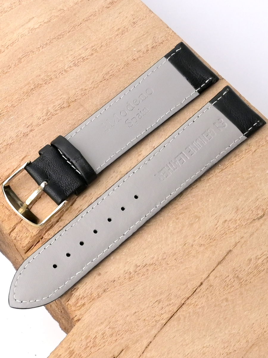 Ремешок Modeno для наручных часов, изготовленный из высококачественной натуральной кожи. Ширина крепления: 22 мм. Ширина пряжки: 20 мм. Длина большей части: 125 мм. Длина меньшей части без застежки: 85 мм. Пряжка из нержавеющей стали с покрытием цвета желтого золота.