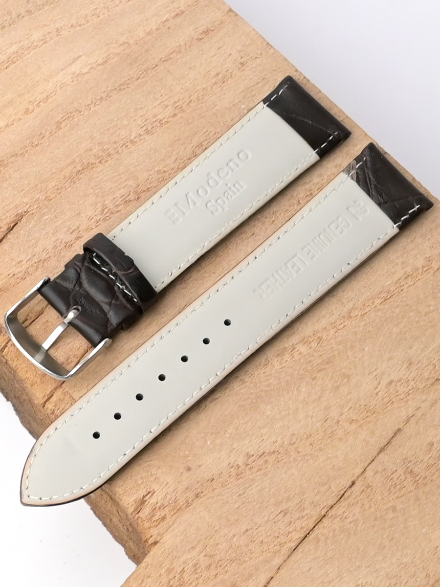 Ремешок Modeno для наручных часов, изготовленный из высококачественной натуральной кожи. Ширина крепления: 22 мм. Ширина пряжки: 20 мм. Длина большей части: 125 мм. Длина меньшей части без застежки: 85 мм. Пряжка из нержавеющей стали.