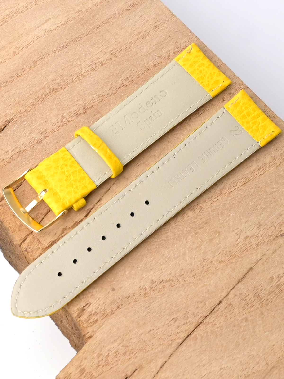 Ремешок Modeno для наручных часов, изготовленный из высококачественной натуральной кожи. Ширина крепления: 22 мм. Ширина пряжки: 20 мм. Длина большей части: 125 мм. Длина меньшей части без застежки: 85 мм. Пряжка из нержавеющей стали с покрытием цвета желтого золота.