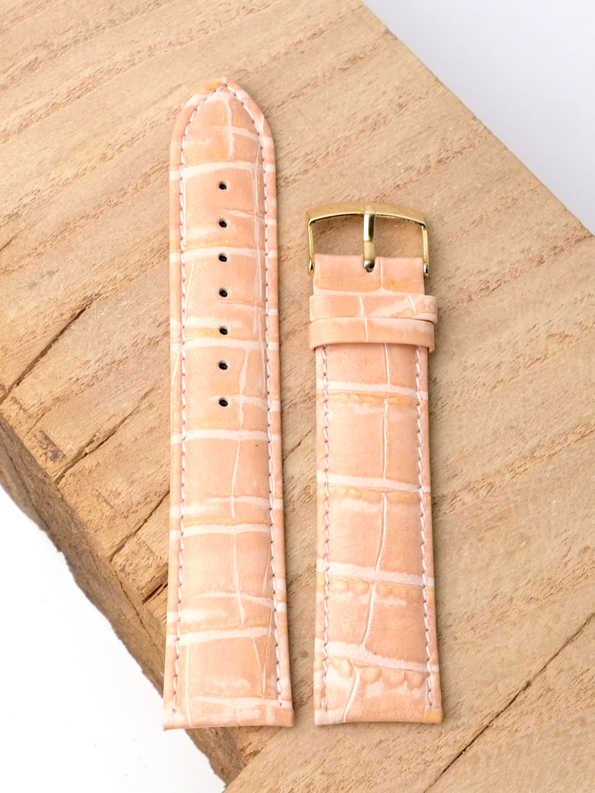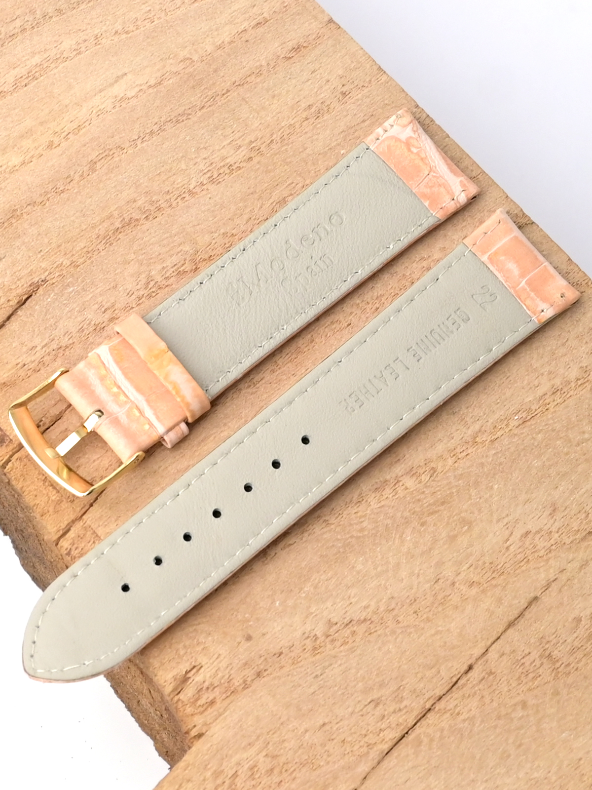 Ремешок Modeno для наручных часов, изготовленный из высококачественной натуральной кожи. Ширина крепления: 22 мм. Ширина пряжки: 20 мм. Длина большей части: 125 мм. Длина меньшей части без застежки: 85 мм. Пряжка из нержавеющей стали с покрытием цвета желтого золота.