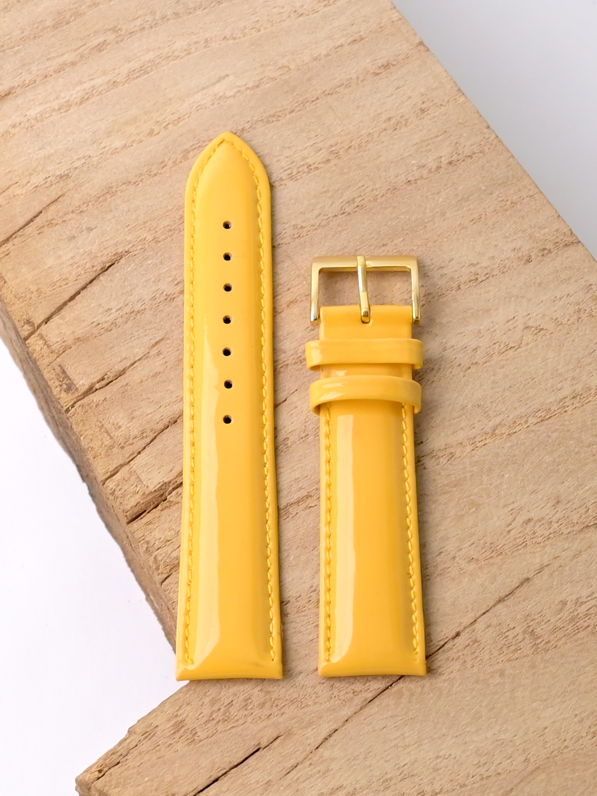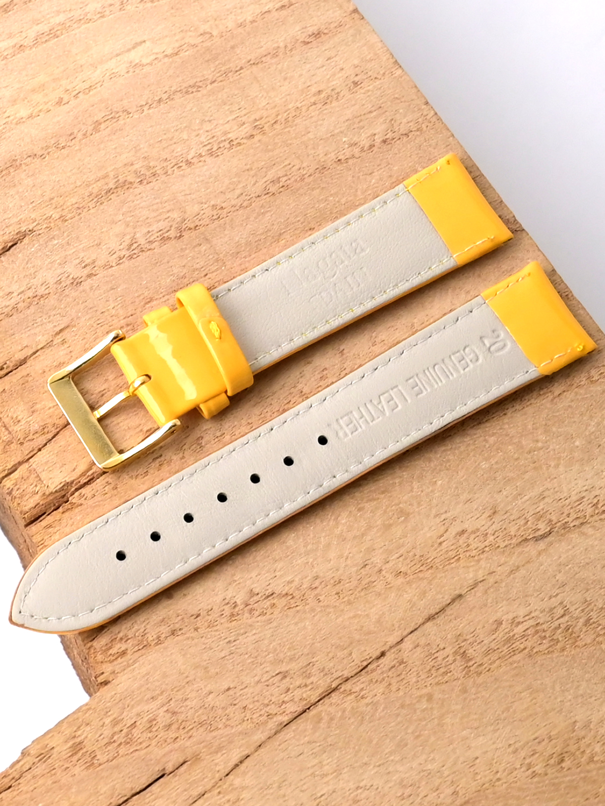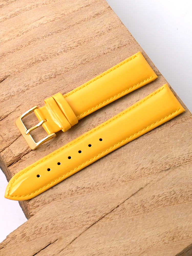 Лакированный ремешок Nagata для наручных часов, изготовленный из высококачественной натуральной кожи. Ширина крепления: 20 мм. Ширина пряжки: 18 мм. Длина большей части: 115 мм. Длина меньшей части без застежки: 75 мм. Пряжка выполнена из алюминия с покрытием цвета желтого золота.