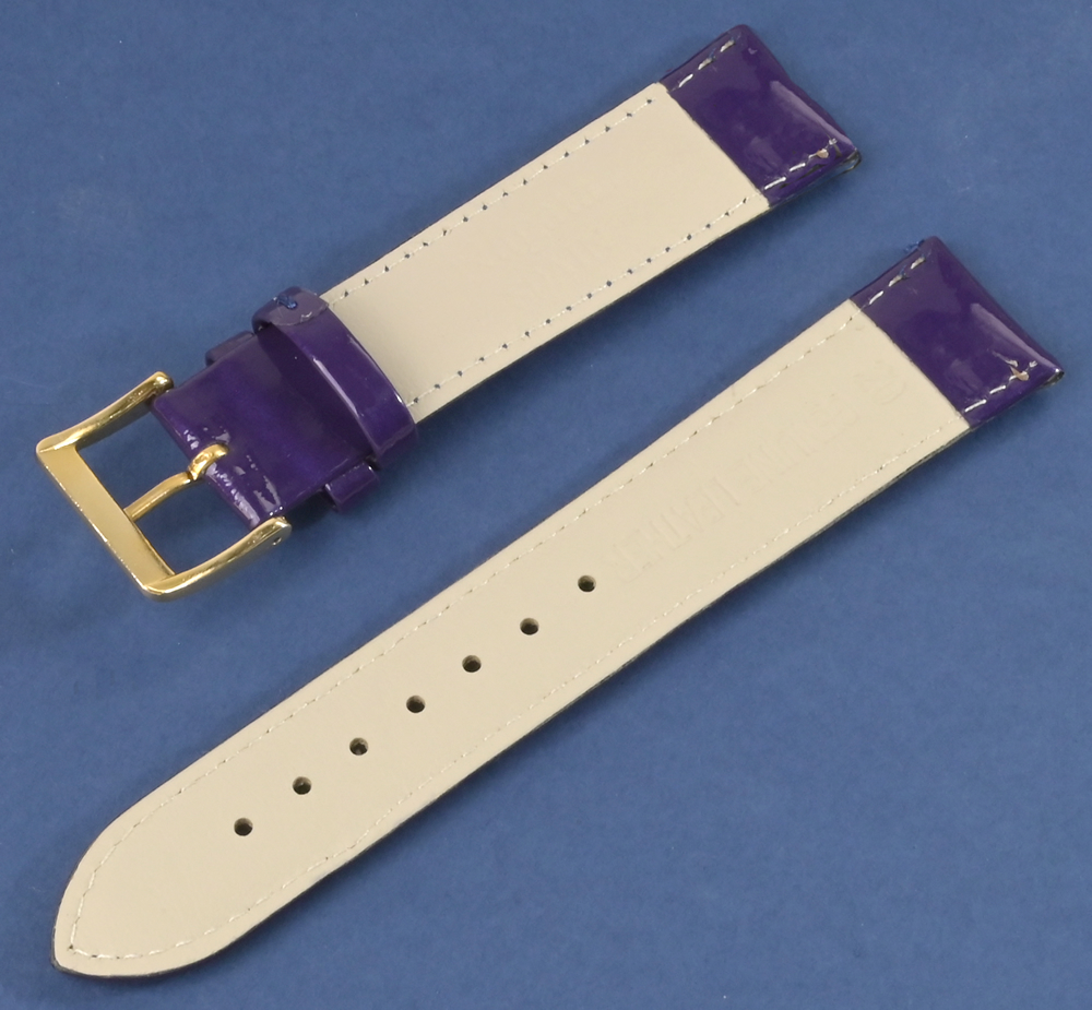 Лакированный ремешок Nagata для наручных часов, изготовленный из высококачественной натуральной кожи. Ширина крепления: 20 мм. Ширина пряжки: 18 мм. Длина большей части: 115 мм. Длина меньшей части без застежки: 75 мм. Пряжка с покрытием цвета желтого золота.