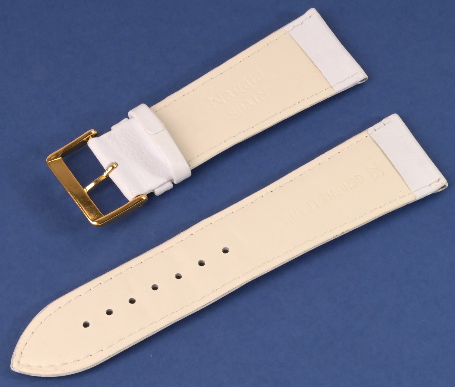 Ремешок Nagata для наручных часов, изготовленный из высококачественной натуральной кожи. Ширина крепления: 26 мм. Ширина пряжки: 22 мм. Длина большей части: 125 мм. Длина меньшей части без застежки: 75 мм. Пряжка с покрытием цвета желтого золота.