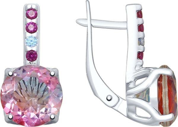 Серьги из серебра с 2 ситаллами, 2 голубыми и 6 сиреневыми фианитами.