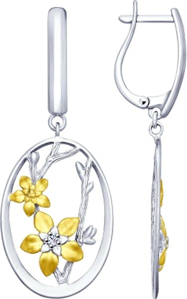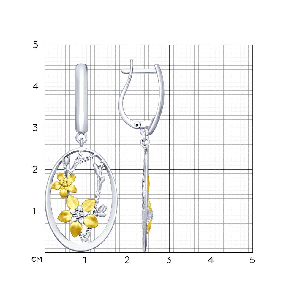Серьги из серебра с частичным золочением, украшены 2 фианитами.