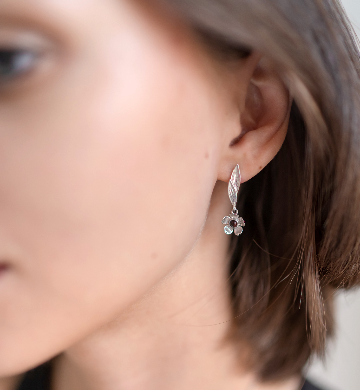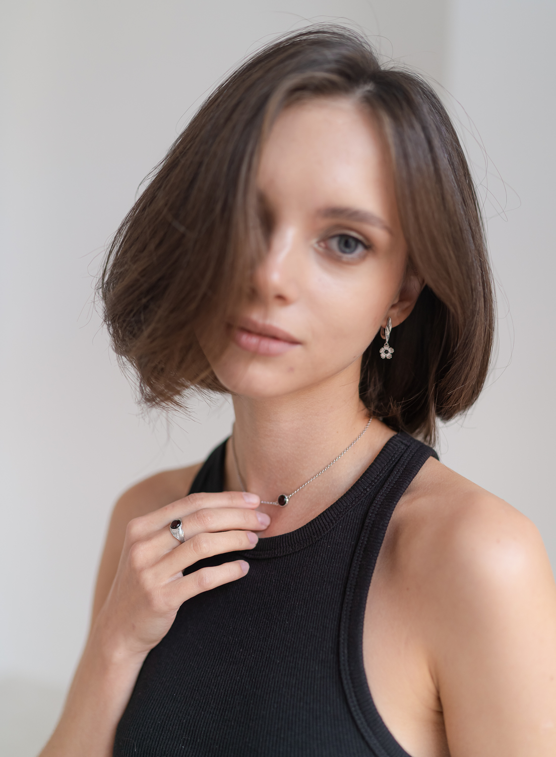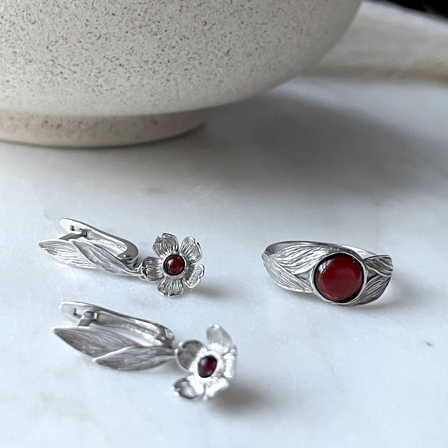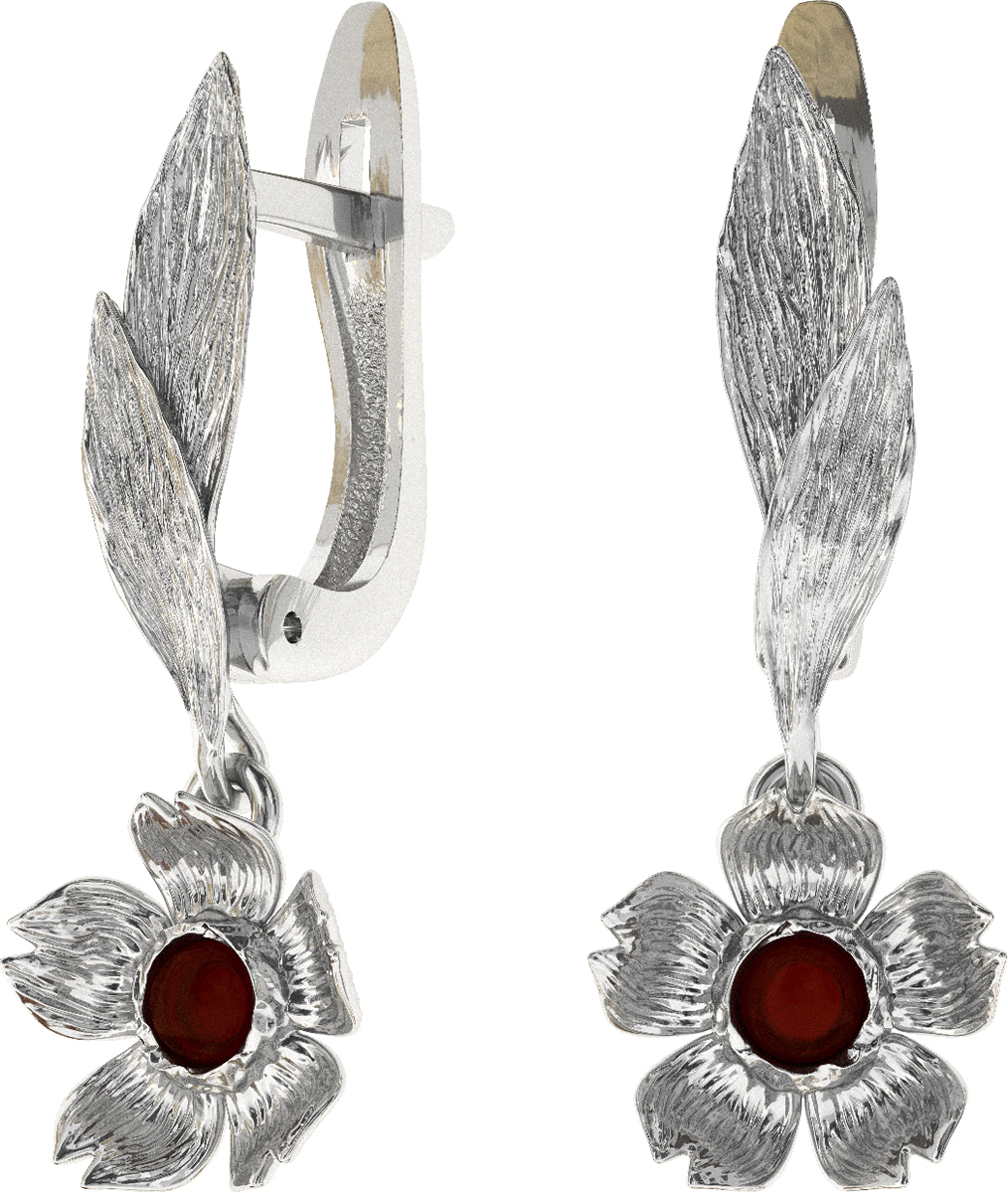Дизайнерские серьги из родированного серебра 925 пробы, дополненные вставками из натурального янтаря.