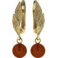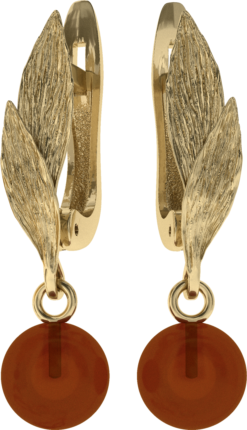 Дизайнерские серьги из золоченого серебра 925 пробы, дополненные вставками-шариками из натурального янтаря.