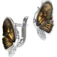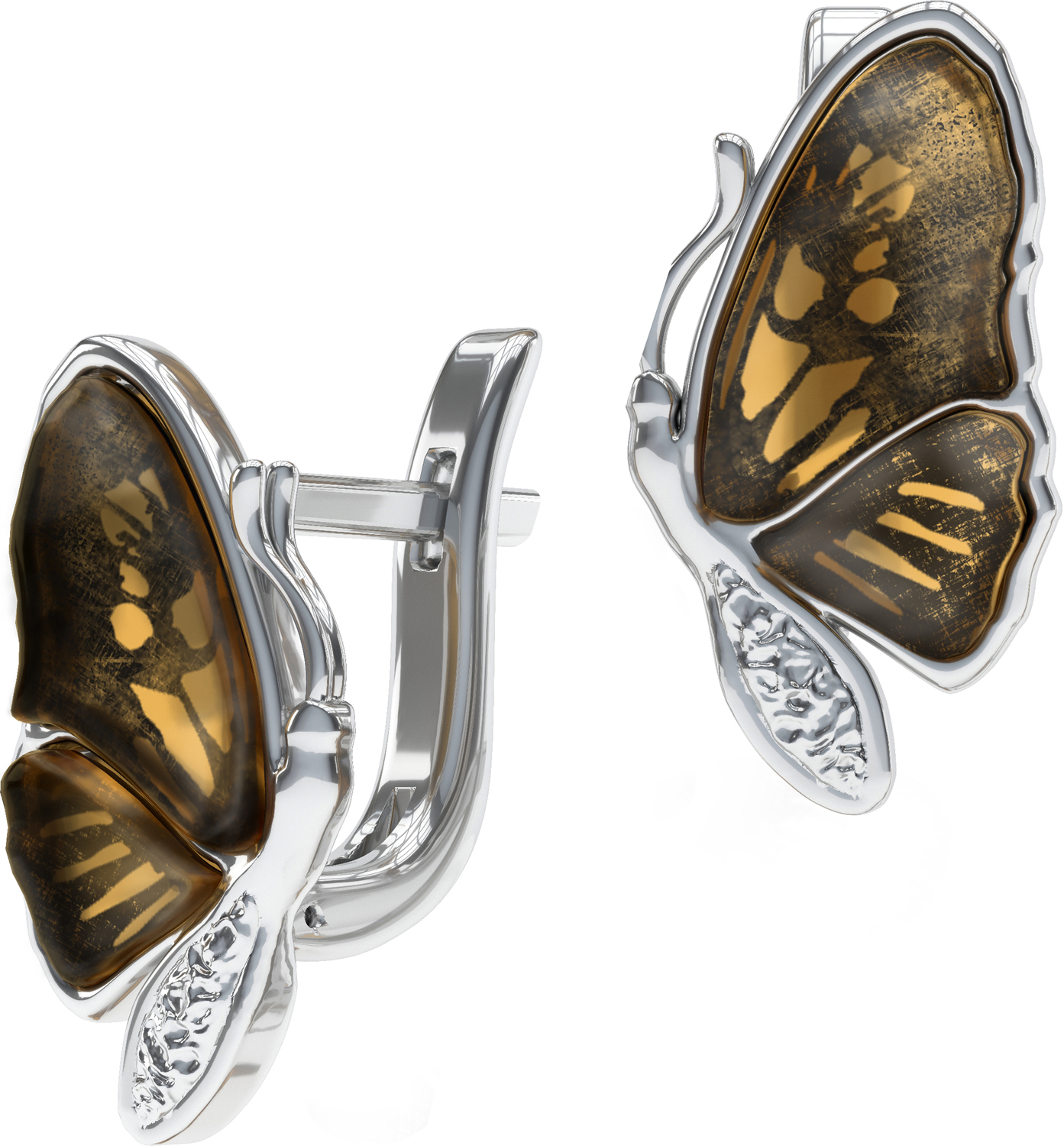Дизайнерские серьги из серебра 925 пробы, дополненные вставками из натурального янтаря.