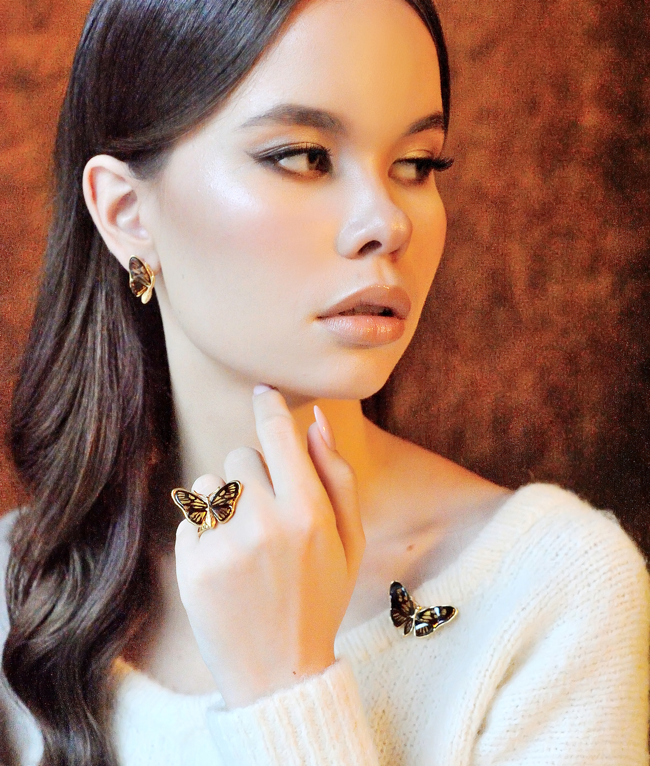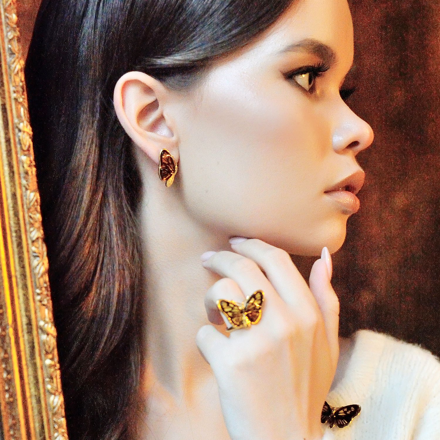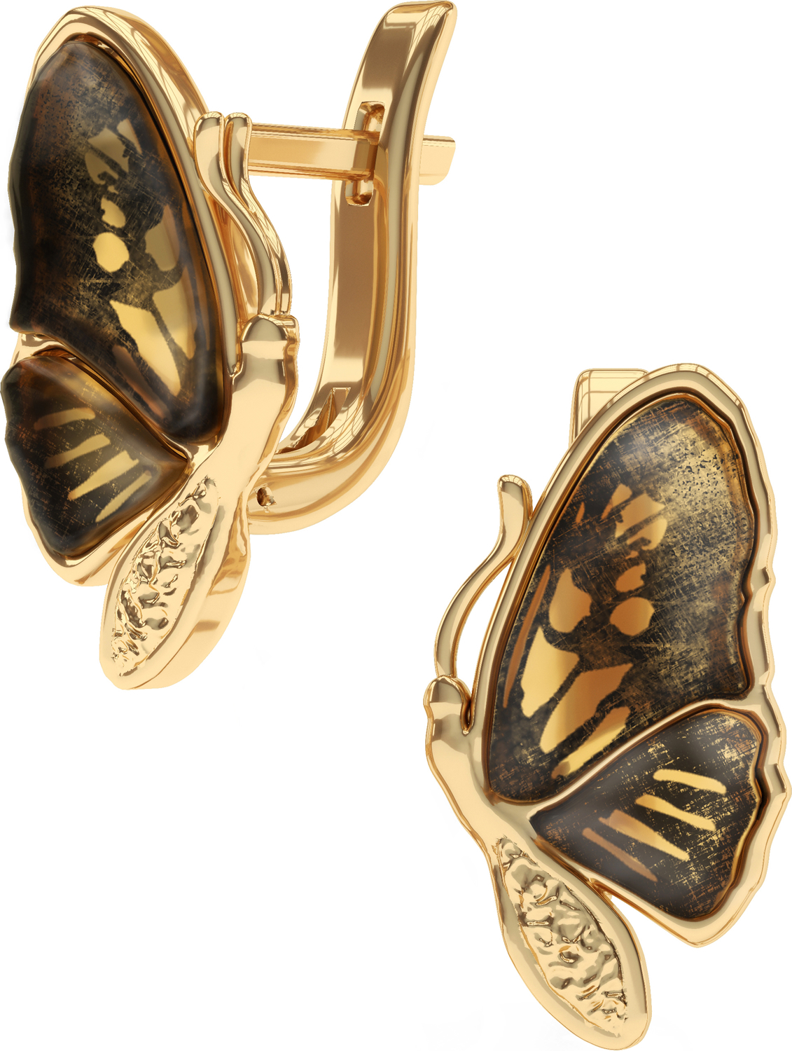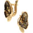 Дизайнерские серьги из золоченого серебра 925 пробы, дополненные вставками из натурального янтаря.