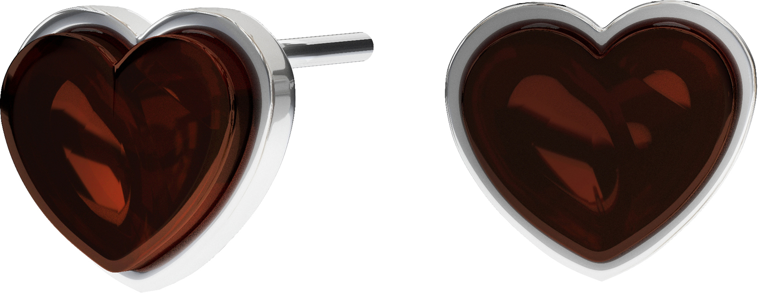 Дизайнерские серьги из серебра 925 пробы, дополненные вставками в виде сердечек из натурального янтаря.