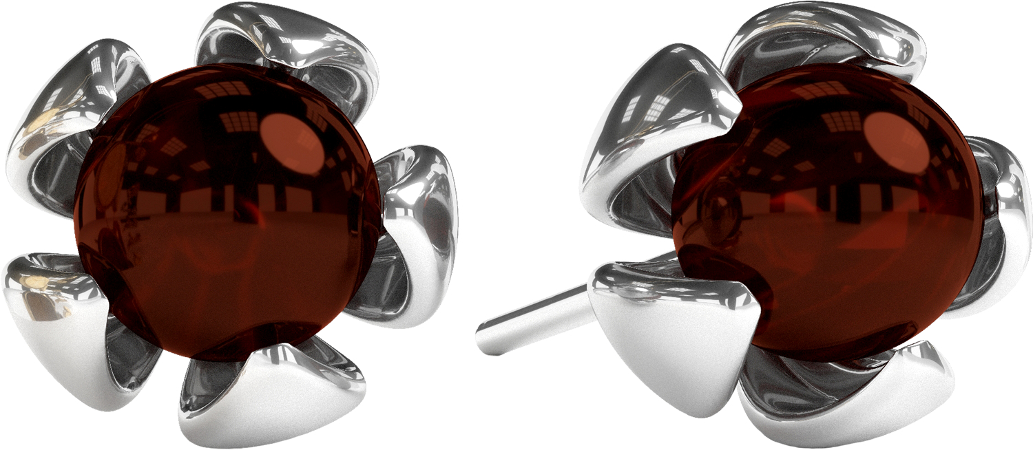 Дизайнерские серьги из серебра 925 пробы, дополнены вставками из натурального янтаря.