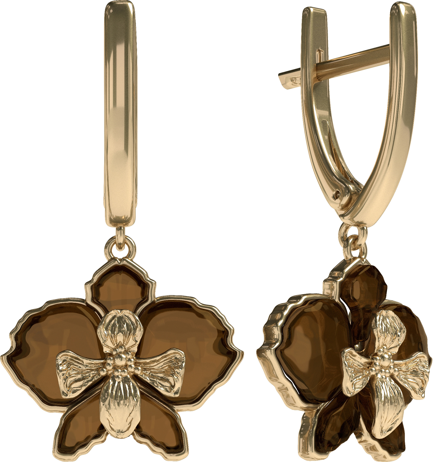 Дизайнерские серьги из золоченого серебра 925 пробы, дополненные вставками из натурального янтаря.