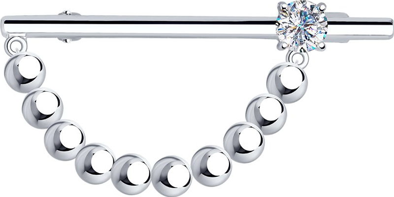 Брошь из серебра с фианитом.