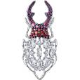 Брошь из серебра с красными корунд (синт.) и фианитами.