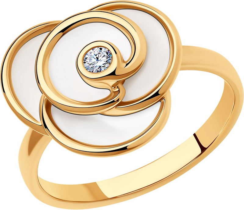 Кольцо из золочёного серебра с и эмалью и фианитом.