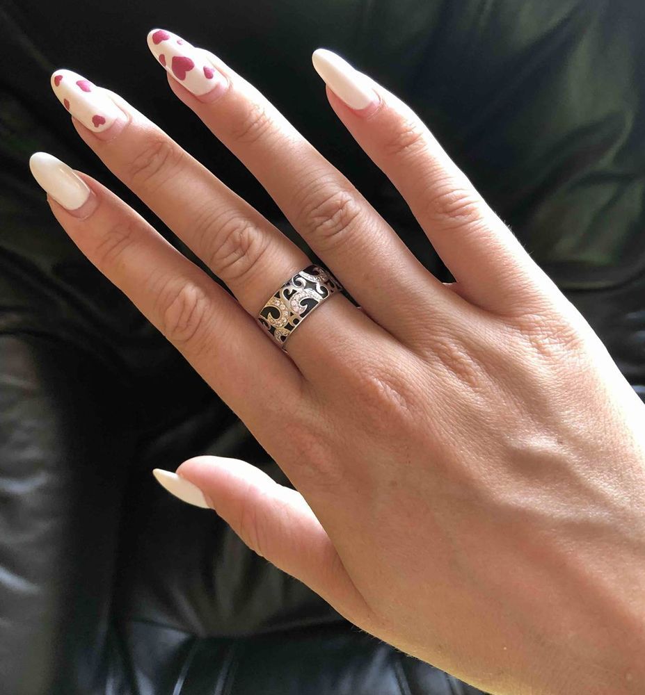 Кольцо из серебра с эмалью и 28 фианитами.