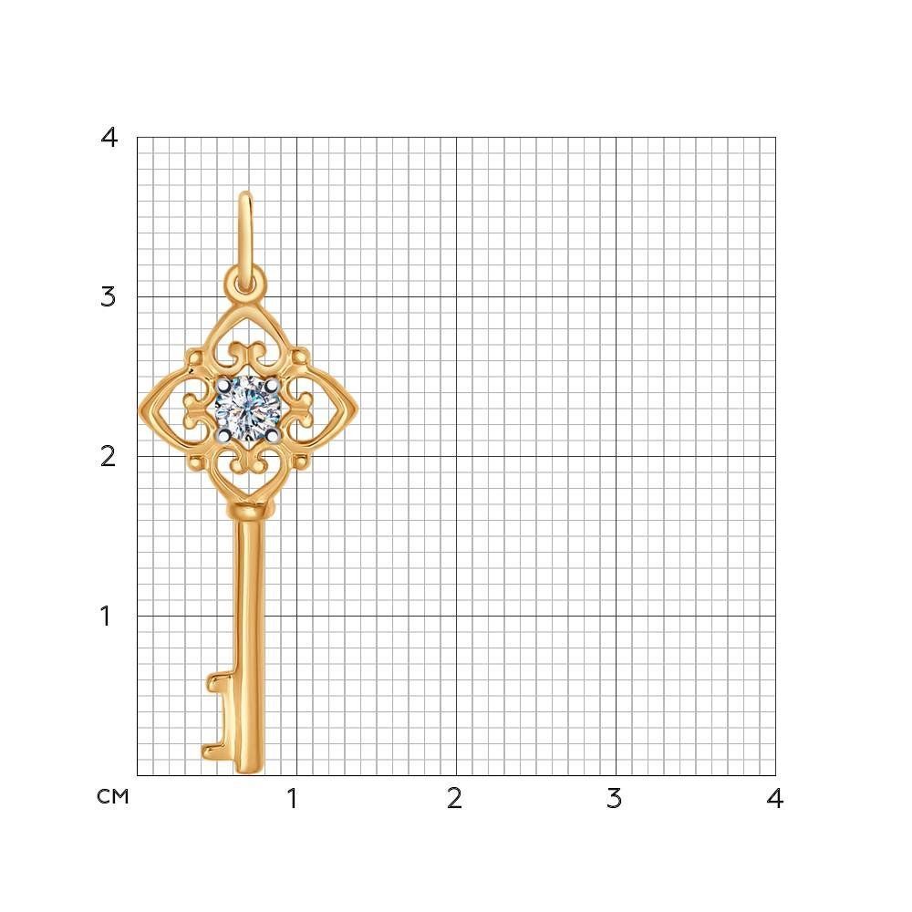 Подвеска в виде ключа из золочёного серебра с фианитом.