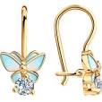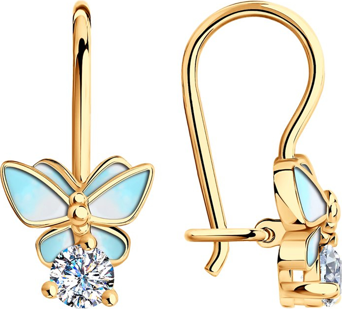 Детские серьги с голубыми бабочками. Выполнены из золоченого серебра 925 пробы, украшены эмалью и фианитами. Французский тип замка.