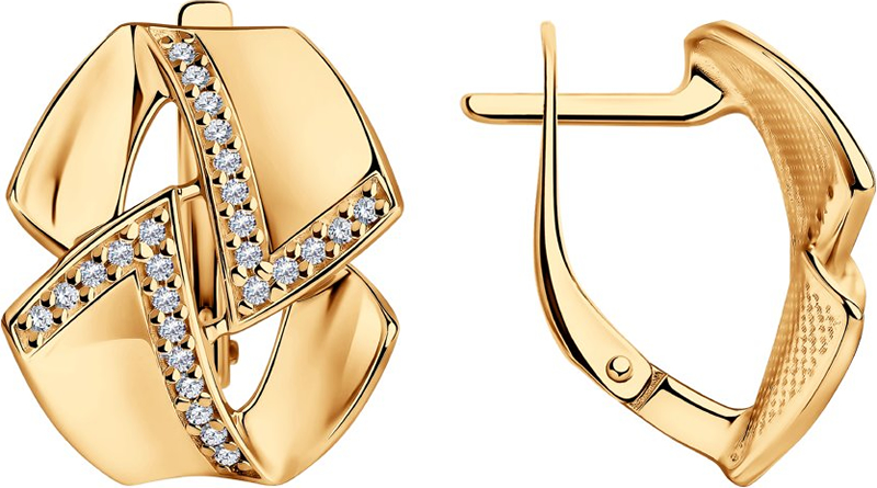 Серьги из золочёного серебра с 52 фианитами. Английский замок.