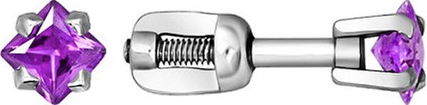 Серьги-пусеты из серебра с сиреневыми фианитами.