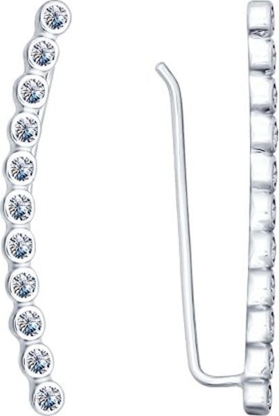 Серьги-зажимы из серебра с 22 фианитами.