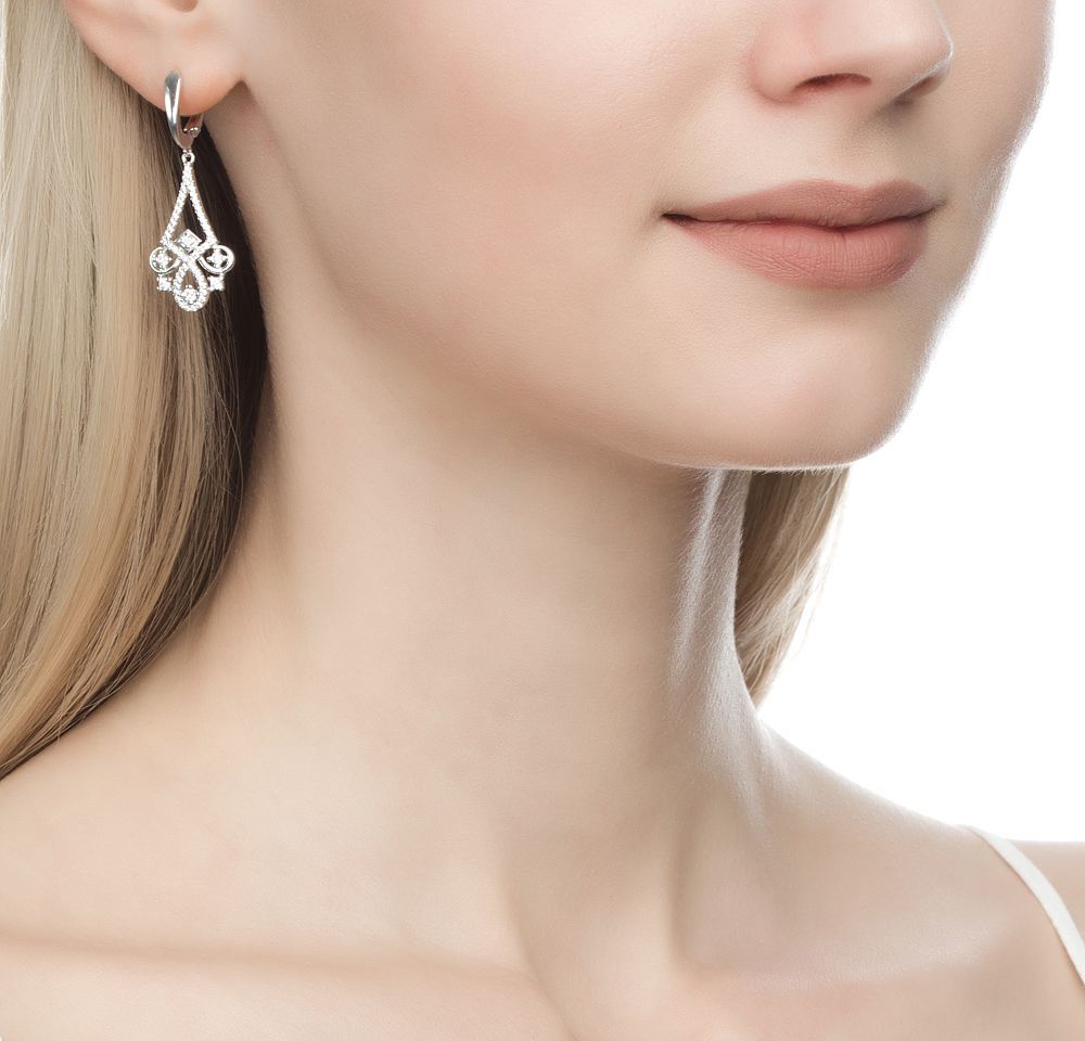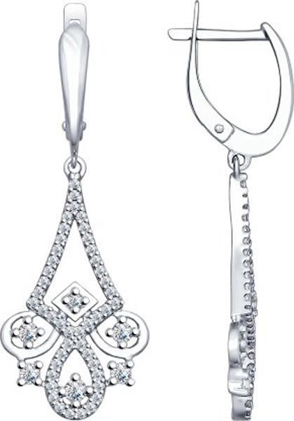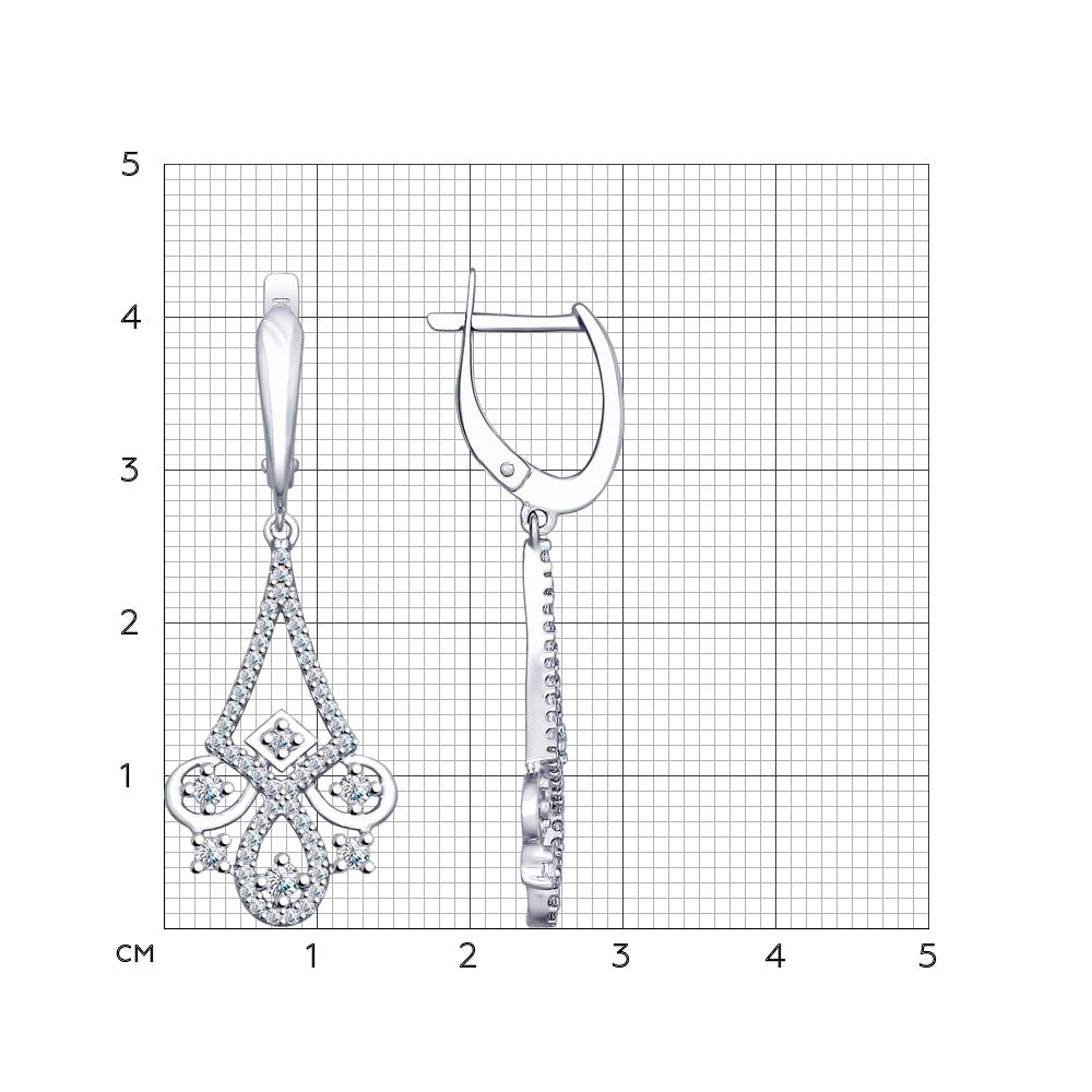 Длинные серьги из серебра с фианитами. Украшены 102 фианитами.