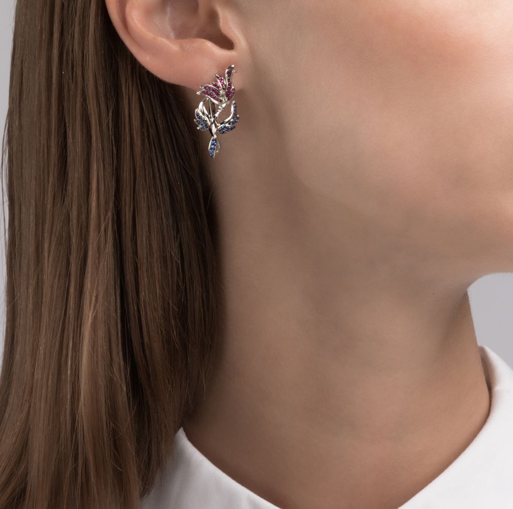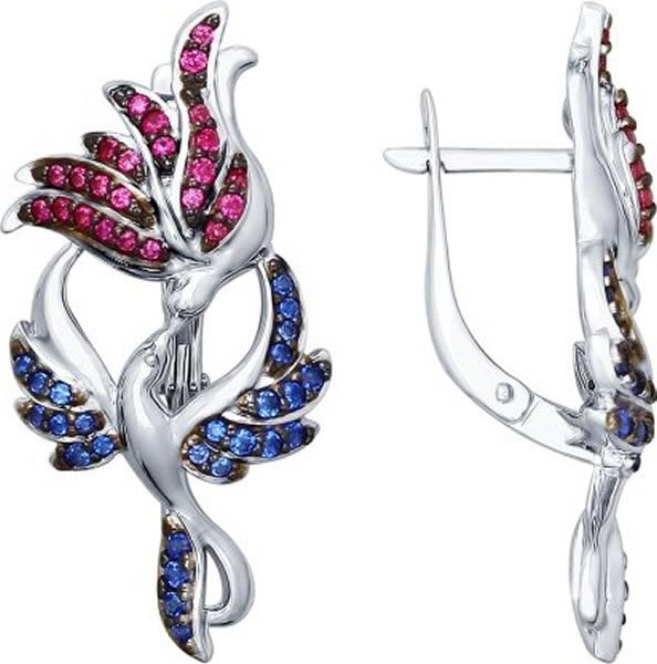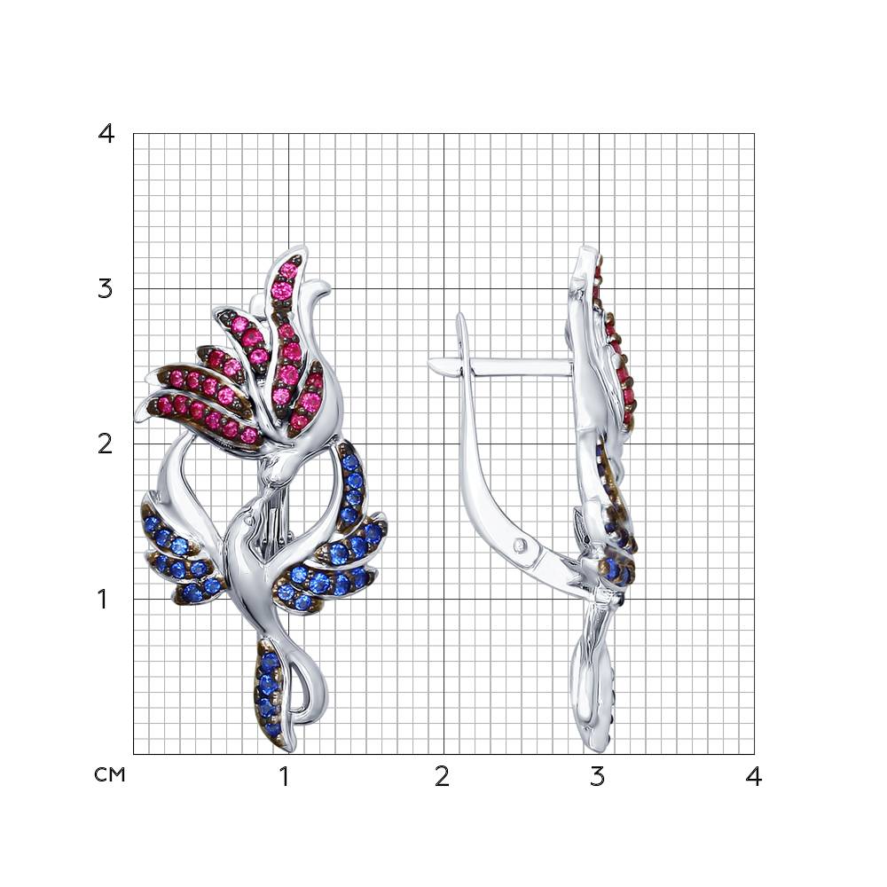 Серьги из серебра с красными и синими фианитами. Украшены 98 фианитами.