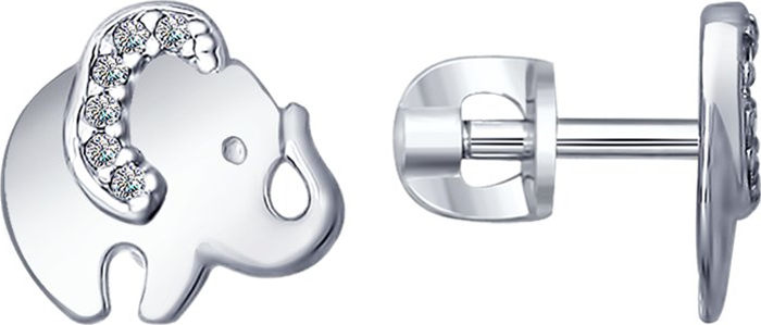 Серьги «Слоник» из серебра, украшены фианитами.
