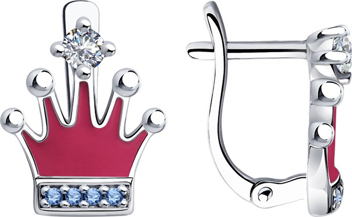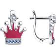 Серьги для девочек из серебра с эмалью и фианитами. Английский тип замка.