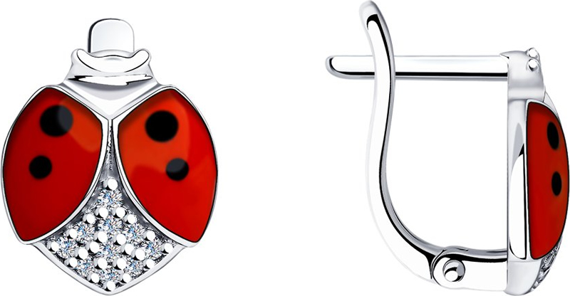 Серьги из серебра с эмалью и 20 фианитами. Английский тип замка.