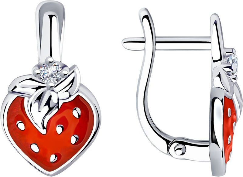 Серьги для девочек из серебра с эмалью и фианитами.