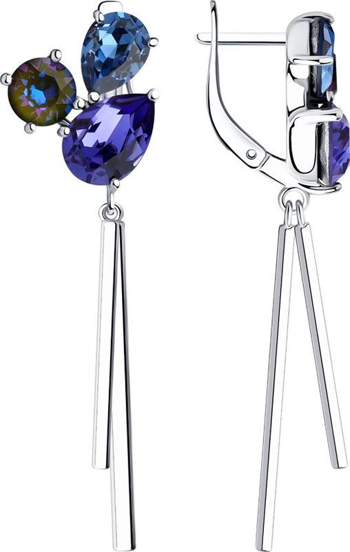 Серьги из серебра с голубыми кристаллами Swarovskiю