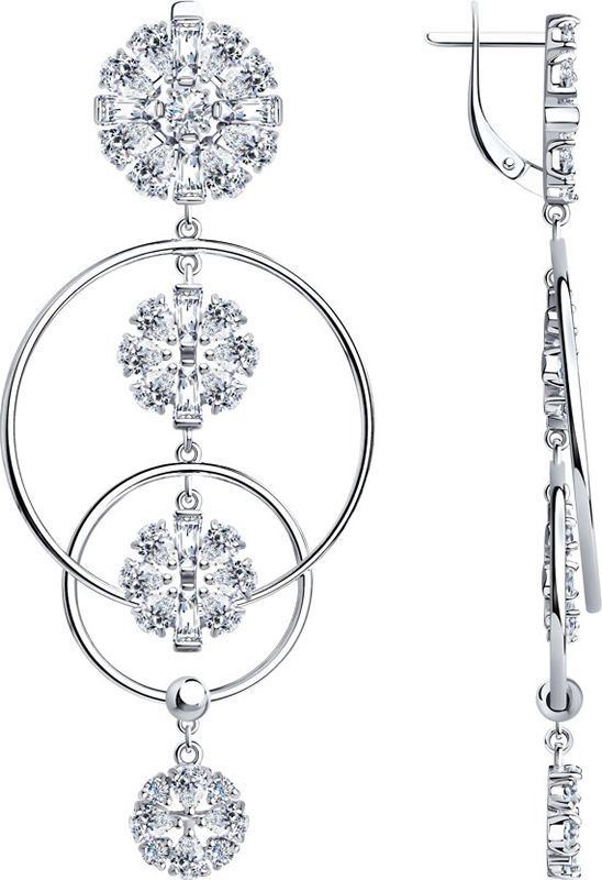 Серьги из серебра с 74 фианитами.