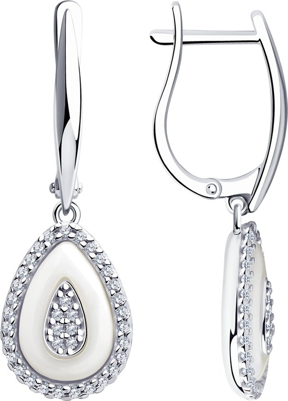 Серьги из серебра с керамикой и 72 фианитами. Английский тип замка.