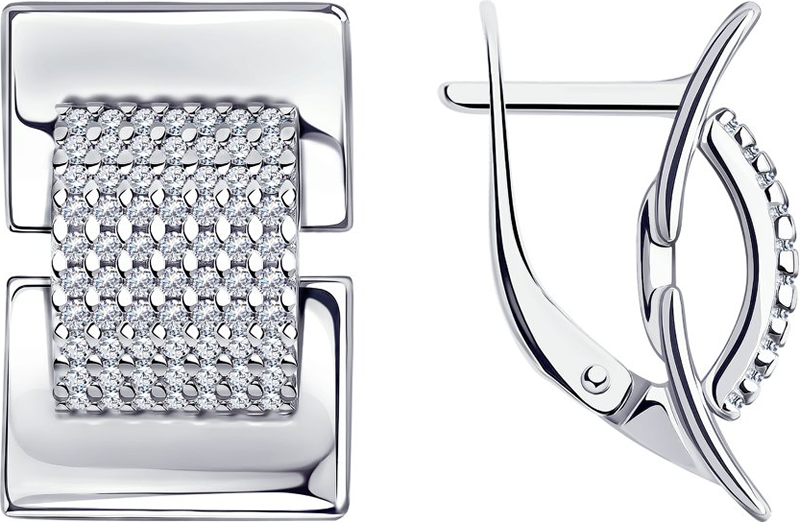 Серьги из серебра с фианитами. Украшены 140 фианитами. Английский тип замка.
