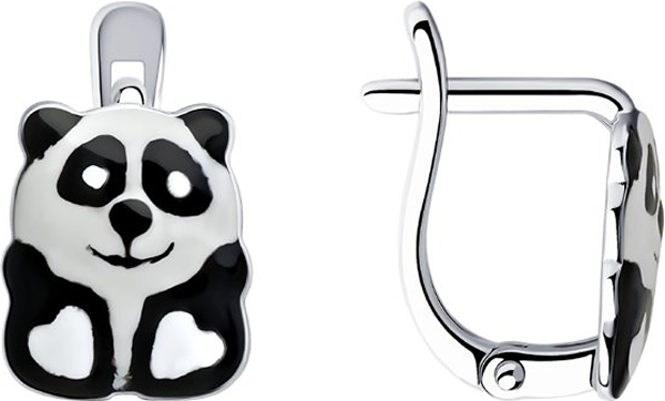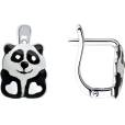 Детские серьги "Панды" из серебра с эмалью. Английский тип замка.