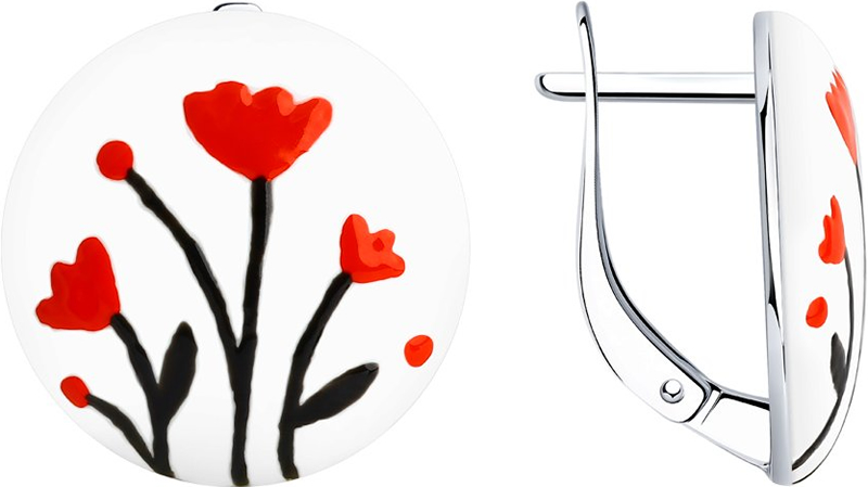Серебряные серьги SOKOLOV 94024442 с эмалью. Английский тип замка.