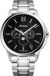 Классические мужские часы на стальном браслете. На отдельных циферблатах отображаются фазы луны, день недели и дата. Заводная головка с защитой. Браслет с раскладывающейся застежкой. Обхват запястья до 21 см. Вес 143 грамма. Гарантия 2 года.