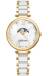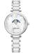Элегантные швейцарские женские часы с указателем фазы луны на перламутровом циферблате. Браслет с керамическими вставками. Вес часов 62 грамма. Гарантия 2 года.
