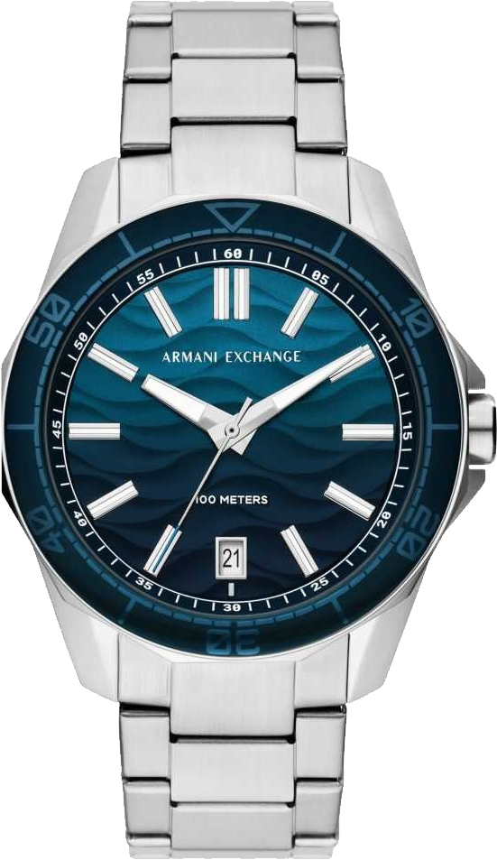 Стильные мужские часы Armani Exchange с текстурированным циферблатом под морскую волну. Присутствует окошко даты. Заводная головка с защитой. Браслет с раскладывающейся застежкой. Гарантия 2 года.