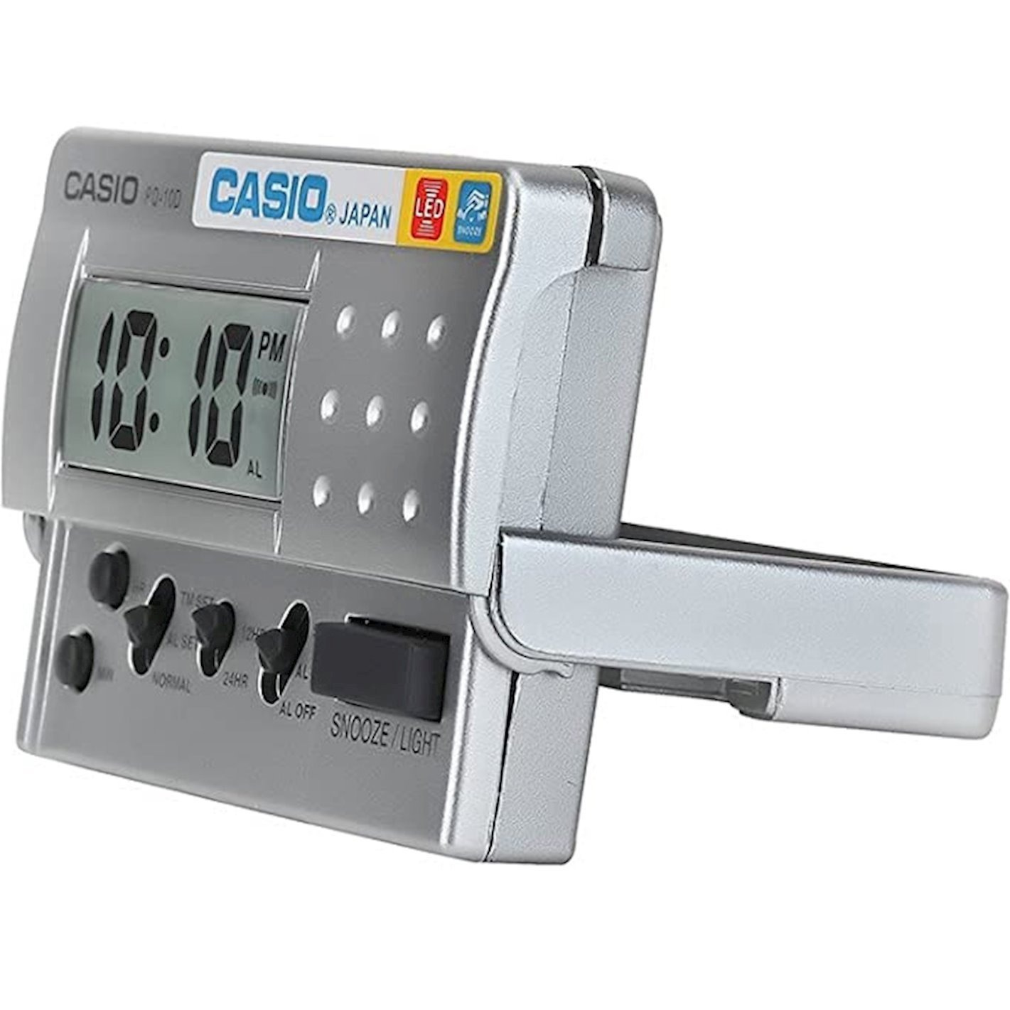 Настольный будильник Casio в дорожном формате. Электрическая подсветка - для освещения циферблата используется светодиод. Ежедневный будильник со звуковым сигналом. Функция повтора сигнала будильника (Snooze). 12- и 24-часовой формат времени. Вес будильника 40 грамм. Гарантия 1 год.