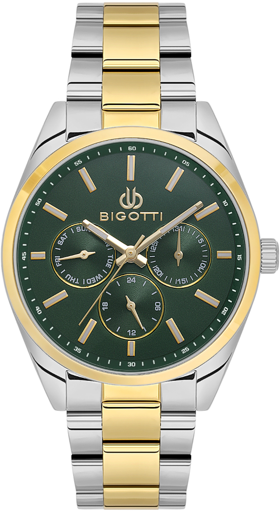 Женские кварцевые наручные часы Bigotti. Дополнительные циферблаты с днем недели, датой и 24-х часовым форматом времени. Браслет с раскладывающейся застежкой. Гарантия 1 год.