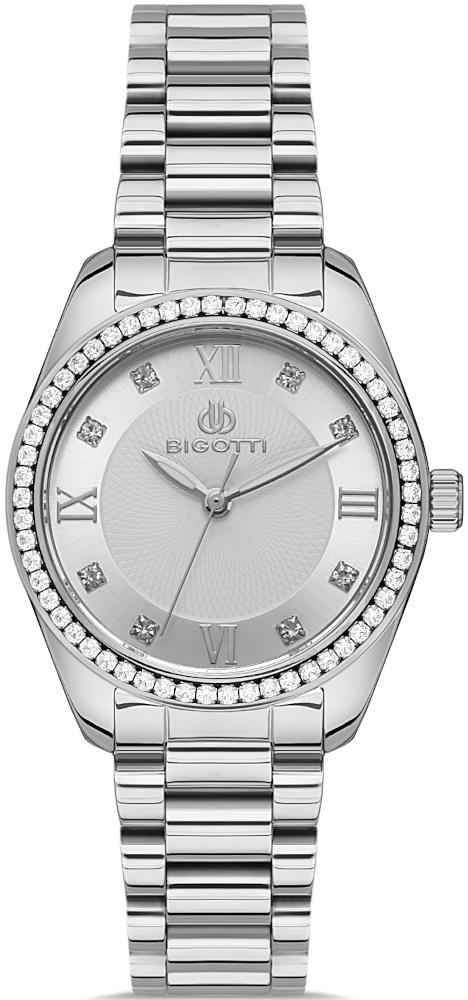 Стильные женские часы Bigotti из коллекции Roma. Корпус и циферблат украшены кристаллами Swarovski. Браслет из нержавеющей стали с классической застежкой. Гарантия 1 год.