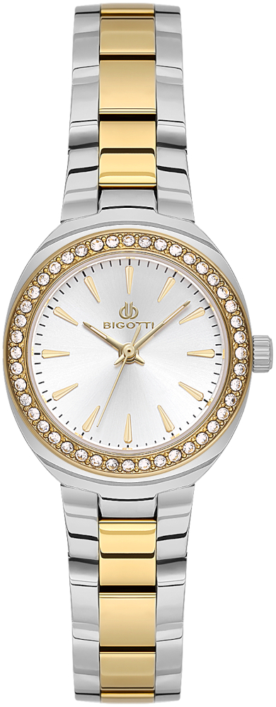 Женские кварцевые наручные часы Bigotti. Корпус декорирован фианитами. Браслет с раскладывающейся застежкой. Гарантия 1 год.